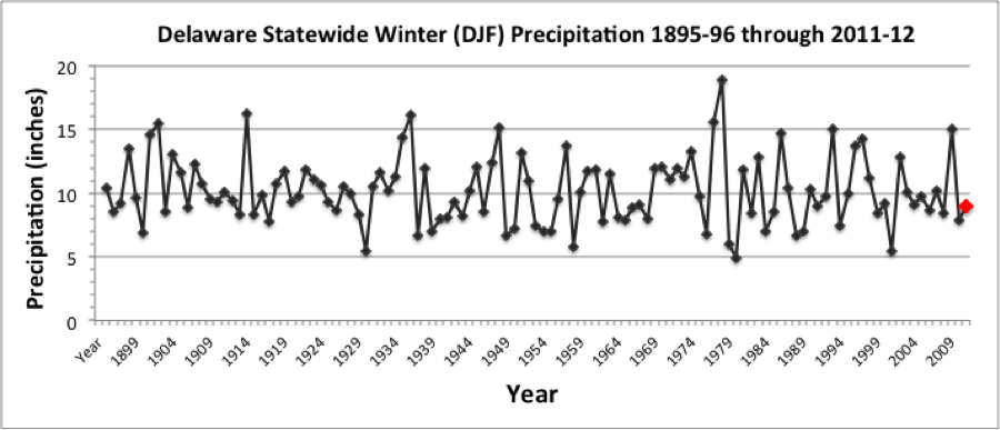 Temperatures across the First State averaged 42.5° F for the season, more than 6° F above the 1971-2000 average of 36.2° F (Figure 1).