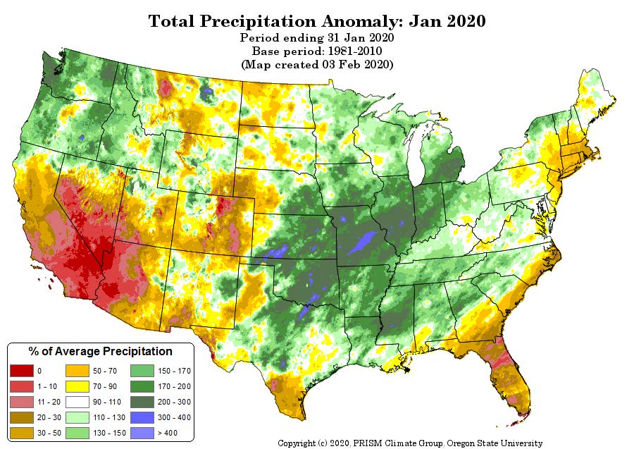 - Figure 6. Total Precipitation Anomaly for January 2020 (from the PRISM Climate Group, OSU)