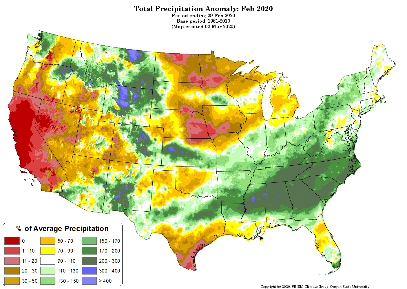 - Figure 6. Total Precipitation Anomaly for February 2020 (from the PRISM Climate Group, OSU).