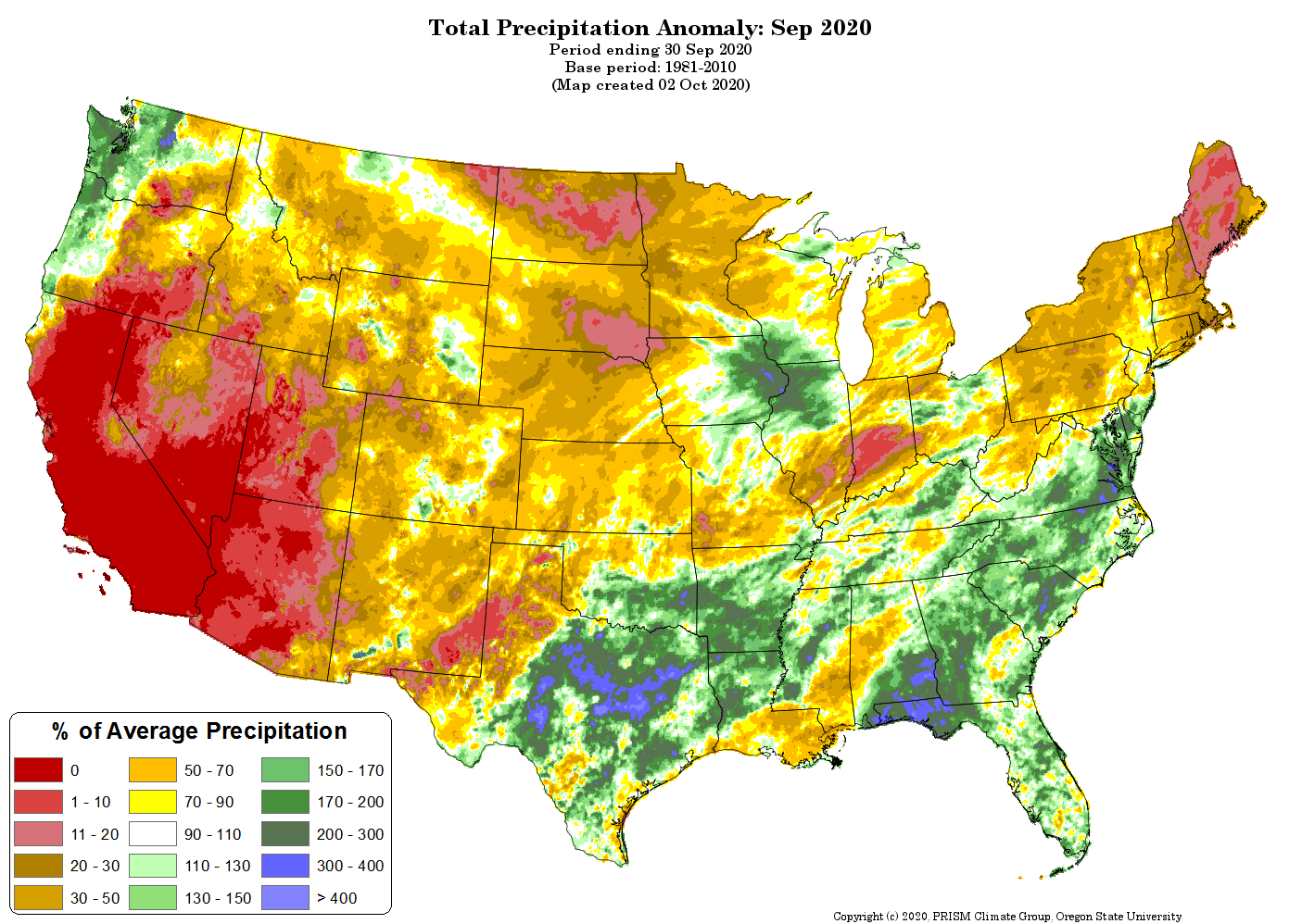 - Figure 6. Total Precipitation Anomaly for September 2020 (from the PRISM Climate Group, OSU).