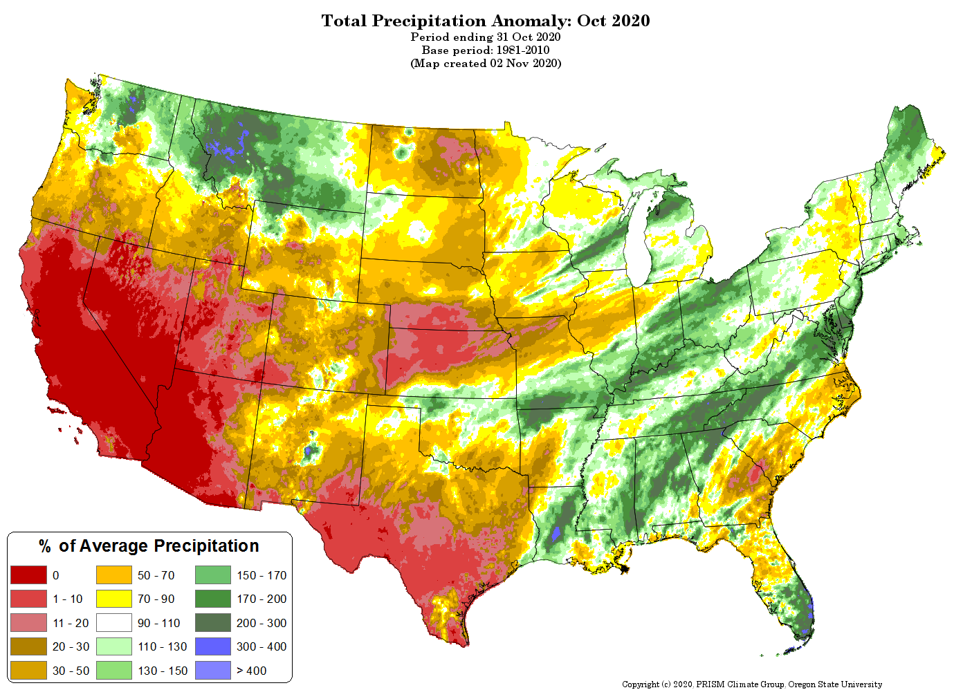 - Figure 6. Total Precipitation Anomaly for October 2020 (from the PRISM Climate Group, OSU).