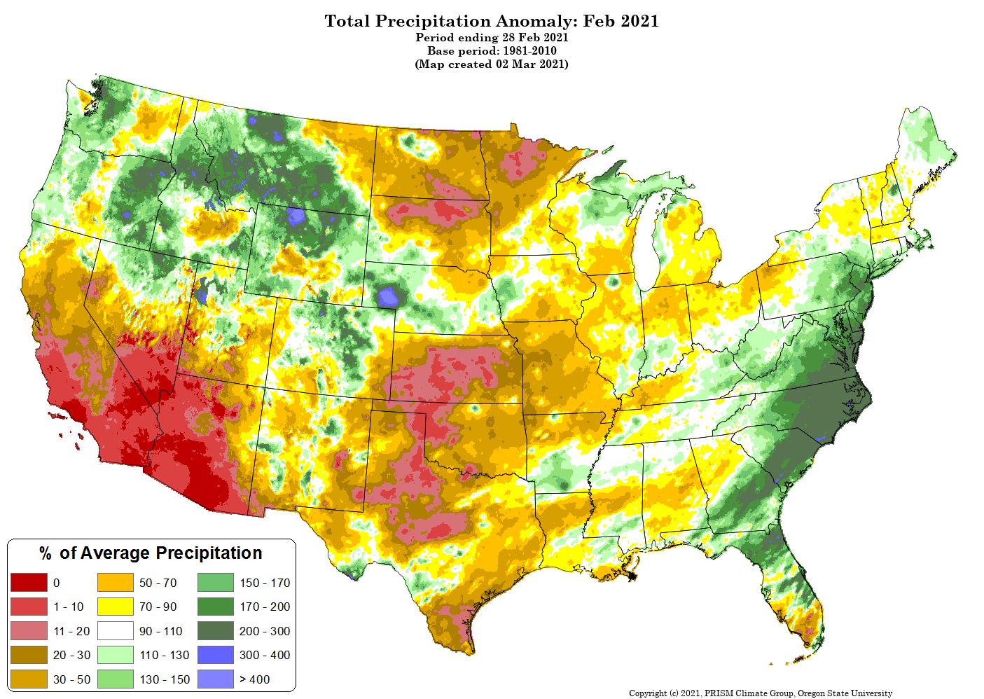 - Figure 5. Total Precipitation Anomaly for February 2021 (from the PRISM Climate Group, OSU).