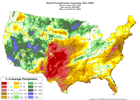 - Figure 6. Total precipitation anomaly for December 2021 (from the PRISM Climate Group, OSU).