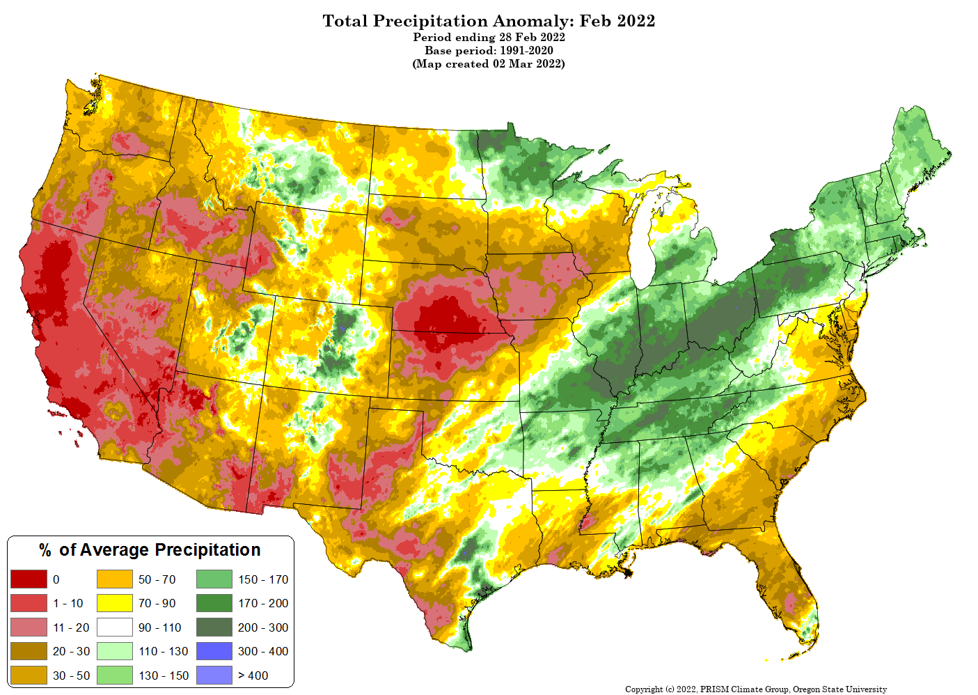 - Figure 6. Total precipitation anomaly for February 2022 (from the PRISM Climate Group, OSU).