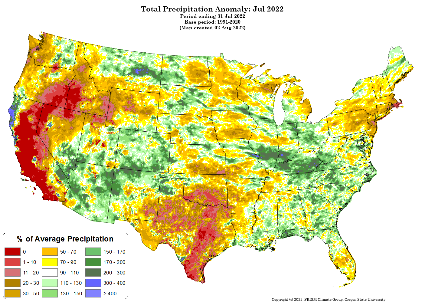 - Figure 6. Total precipitation anomalies for July 2022 (from the PRISM Climate Group, OSU).