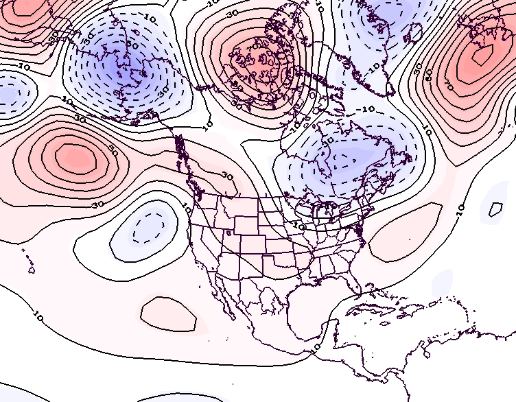 - Figure 7. 500 hPa geopotential height anomalies for July 2022. Negative (blue) anomalies indicate the presence of an anomalous jet stream trough while positive (red) height anomalies indicate the presence of an anomalous jet stream ridge.
