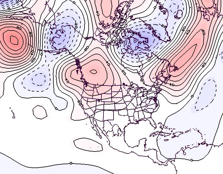 - Figure 7. 500 hPa geopotential height anomalies for August 2022. Negative (blue) anomalies indicate the presence of an anomalous jet stream trough while positive (red) height anomalies indicate the presence of an anomalous jet stream ridge.