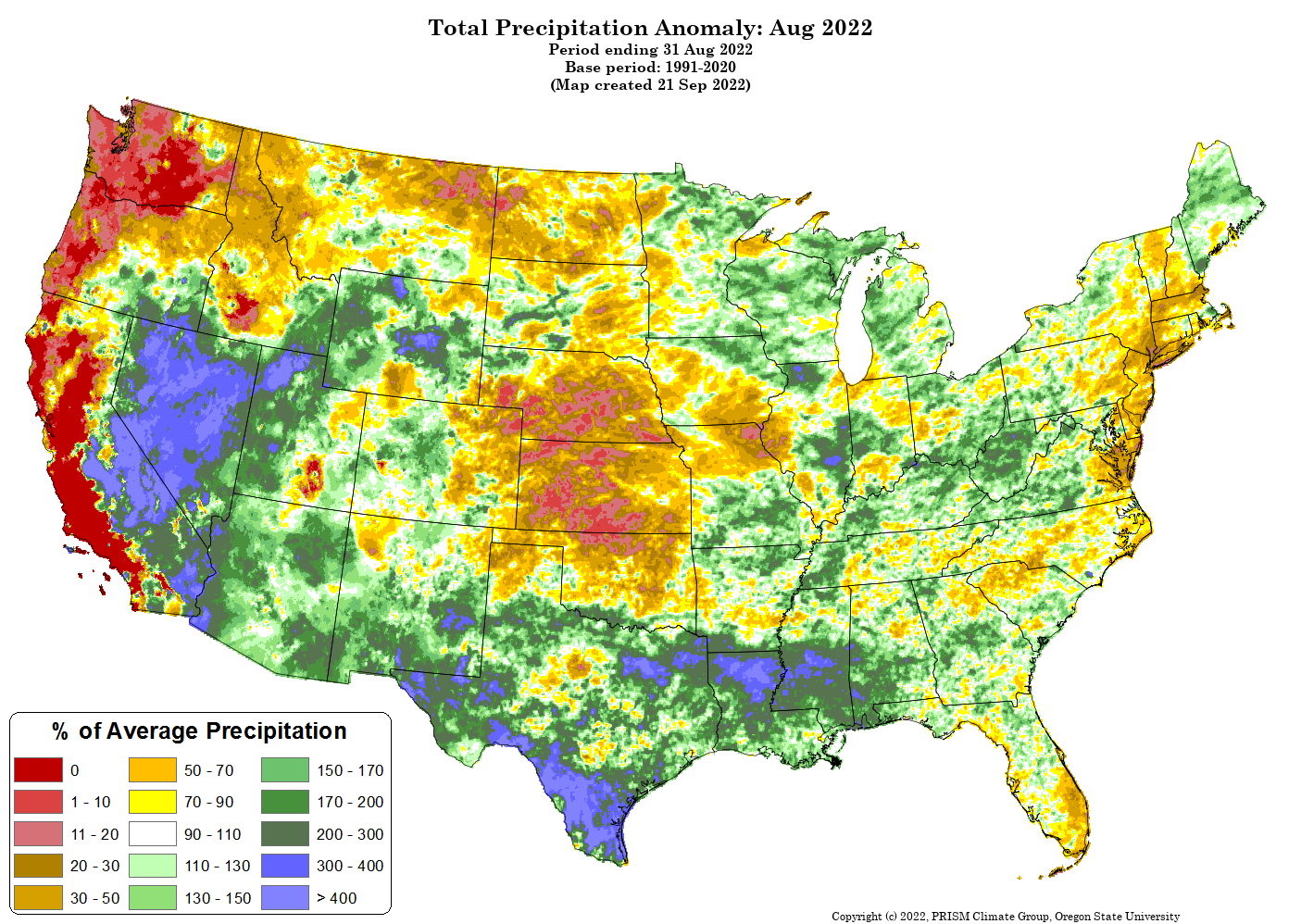 - Figure 6. Total precipitation anomalies for August 2022 (from the PRISM Climate Group, OSU).