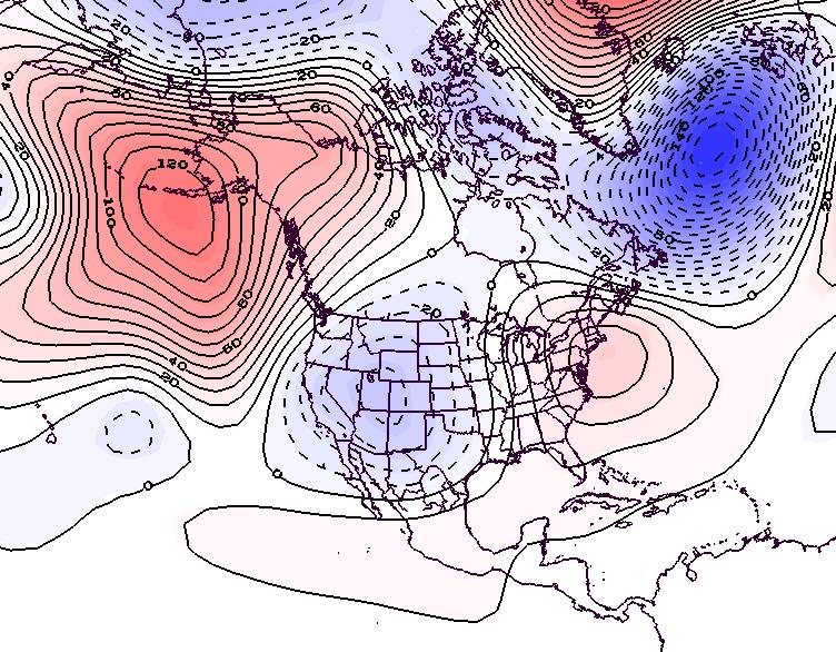 - Figure 7. 500 hPa geopotential height anomalies for November 2022. Negative (blue) anomalies indicate the presence of an anomalous jet stream trough while positive (red) height anomalies indicate the presence of an anomalous jet stream ridge.