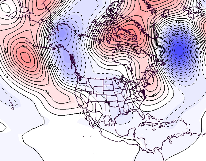 - Figure 7. 500 hPa geopotential height anomalies for April 2023. Negative (blue) anomalies indicate the presence of an anomalous jet stream trough while positive (red) height anomalies indicate the presence of an anomalous jet stream ridge.