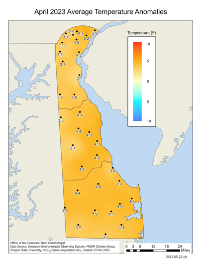 - April 2025 – Warm with Near Normal Precipitation Across Delaware (2025)