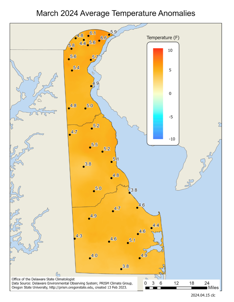 - March 2025 – Very Warm with Above Normal Precipitation Across Delaware (2025)