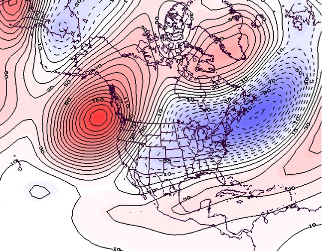 - Figure 7. 500 hPa geopotential height anomalies for January 2025. Negative (blue) anomalies indicate the presence of an anomalous jet stream trough while positive (red) height anomalies indicate the presence of an anomalous jet stream ridge.