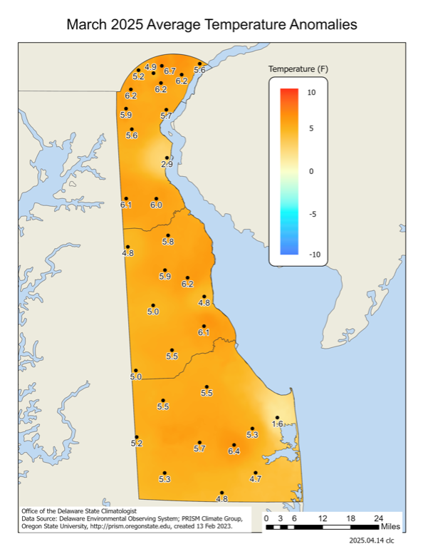 - March 2023 – Warm with Much Below Normal Precipitation Across Delaware (2023)