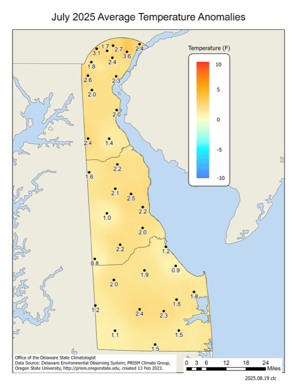 - July 2023 – Warm with Above Normal Precipitation Across Delaware (2023)