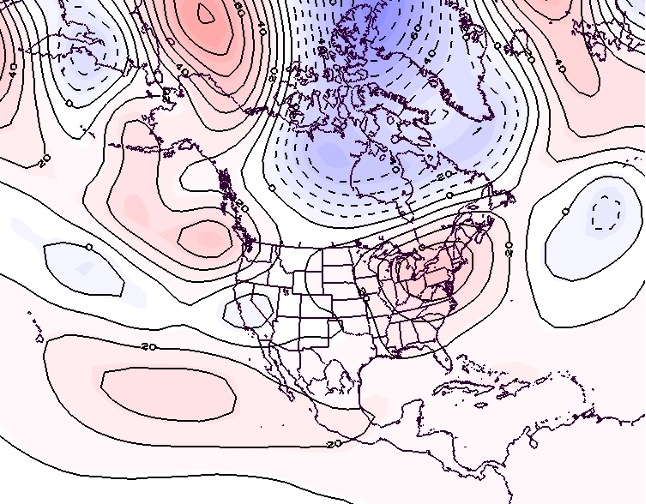 - Figure 7. 500 hPa geopotential height anomalies for July 2025. Negative (blue) anomalies indicate the presence of an anomalous jet stream trough while positive (red) height anomalies indicate the presence of an anomalous jet stream ridge.