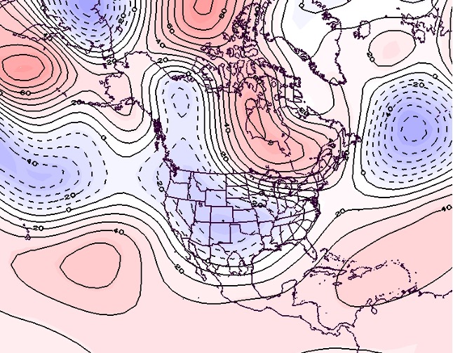 - Figure 7. 500 hPa geopotential height anomalies for January 2025. Negative (blue) anomalies indicate the presence of an anomalous jet stream trough while positive (red) height anomalies indicate the presence of an anomalous jet stream ridge.