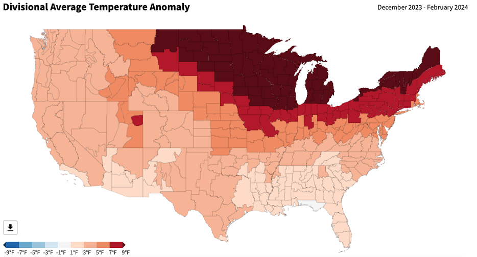 Preliminary data indicates that the statewide average temperature in January was 29.6°F, which is 5.6°F below the 1991-2020 mean value of 35.2°F (Figure 1). January 2025 was tied with two other years as the 22nd coldest January since observations began in 1895.