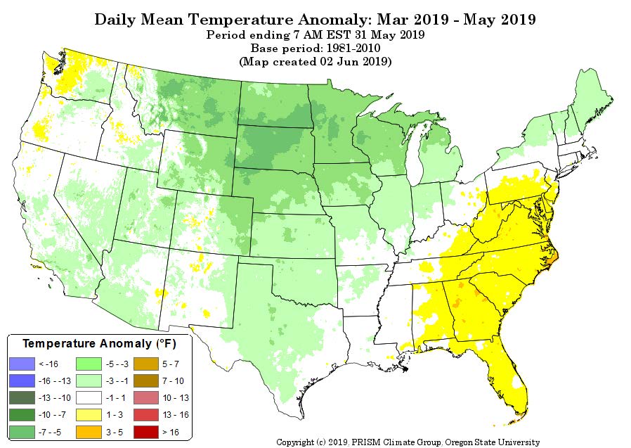 - Figure 3. March 2025 average temperature departures (degrees F) from the 1991-2020 mean based upon DEOS station data.