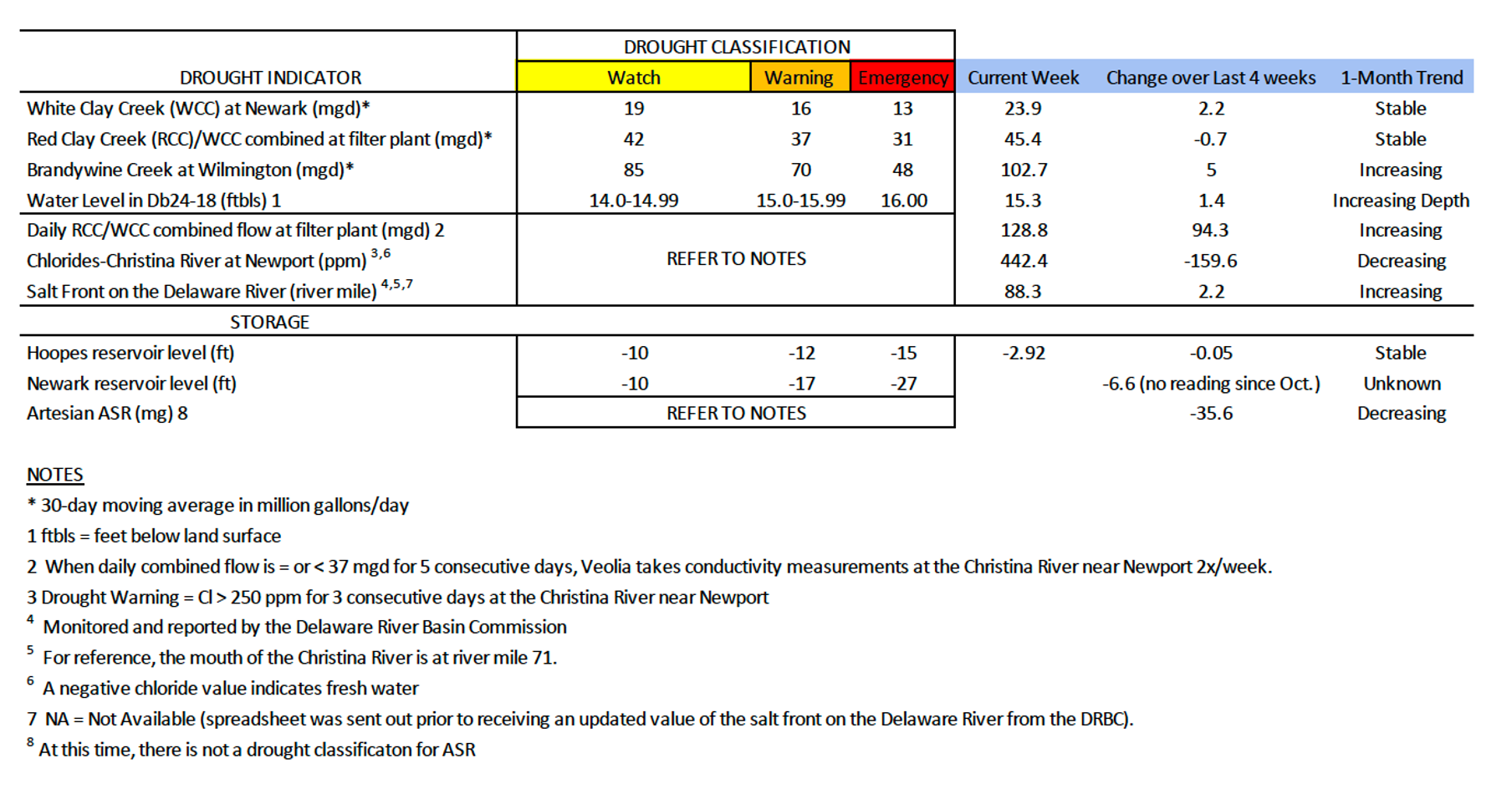 - Streamflow conditions have continued to decline for most areas of the state due to the continued water balance deficits in August and September. This has significantly increased the chloride levels on the Christina and Delaware.