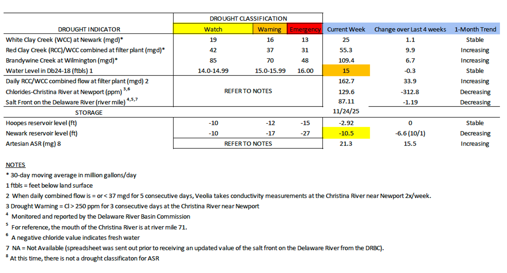 - Groundwater conditions continue to decline, as wells in New Castle County dip below normal in November