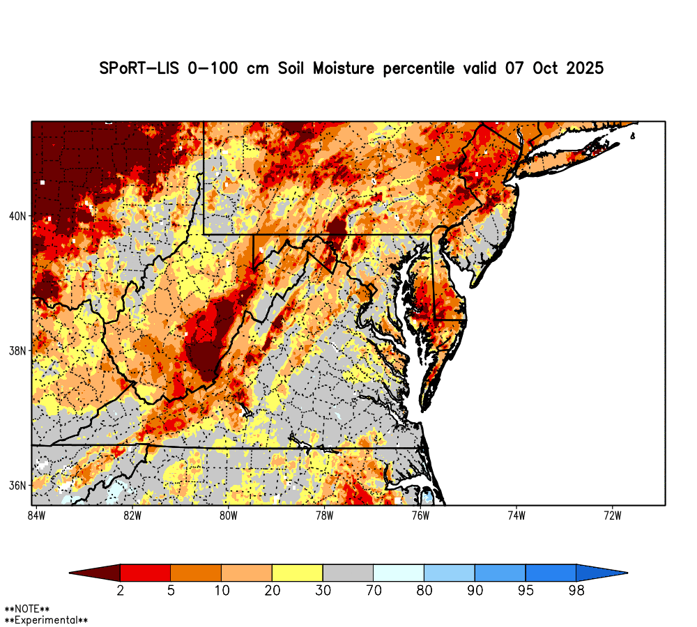 Further south, in Kent and Sussex Counties, streamflows are also well below normal, extending a trend that has persisted for several weeks. Continued rainfall through late October and into early winter will be important, particularly in northern Delaware, to help replenish groundwater and prevent the development of drought conditions heading into the winter months.