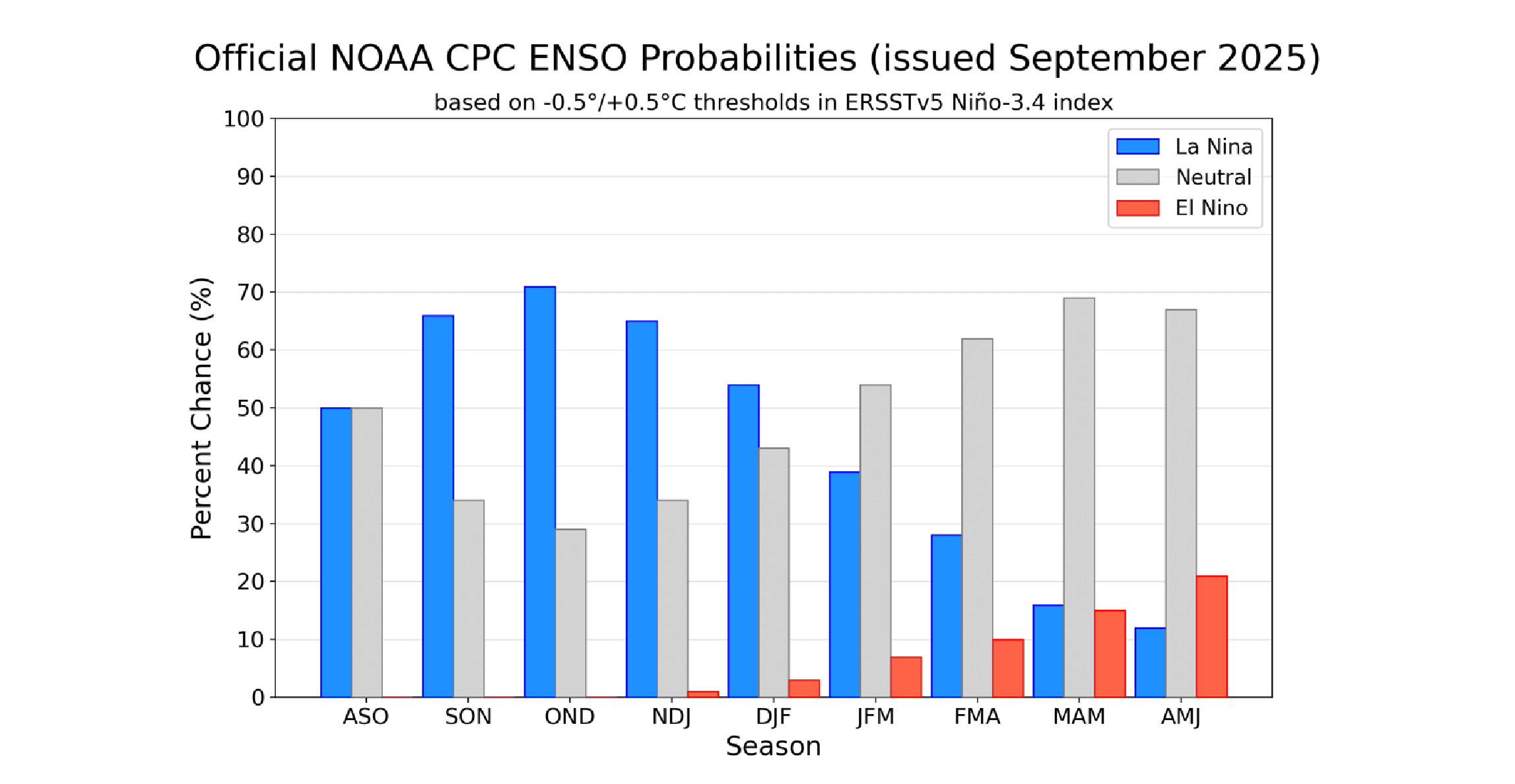 The Seasonal Drought Outlook from NOAA’s Climate Prediction Center (CPC) does not show drought developing in Delaware or the Delmarva Peninsula over the October to December timeframe. This is despite a 71% chance of La Nina developing sometime in the next couple of months (Figure 5).